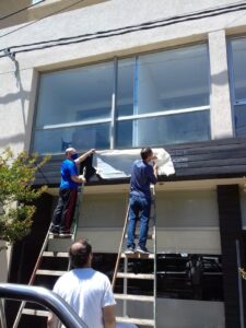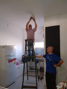 El presidente del Colegio de Técnicos Distrito 5, Martín Carrasco, y el tesorero Eduardo Velilla, junto a todo el equipo de colaboradores de la Delegación Necochea, estuvieron trabajando para poner en condiciones la nueva locación. También contaron con la colaboración de Jorge Donato.